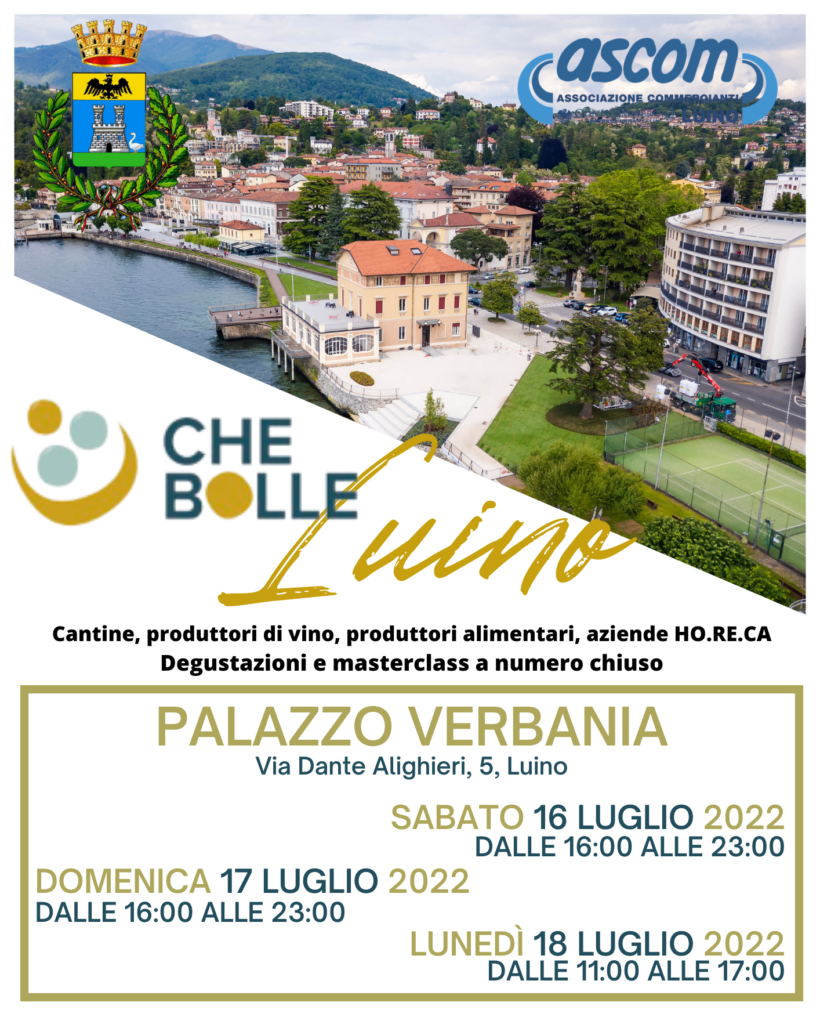 Luino Che Bolle… ma non solo! Una manifestazione che riporta il vino anche al suo carattere originario di elemento portante della tavola: degustazioni, prodotti alimentari tipici, abbinamenti, cucina e tutto il variegato mondo enogastronomico di cui sono ricche tutte le regioni italiane.